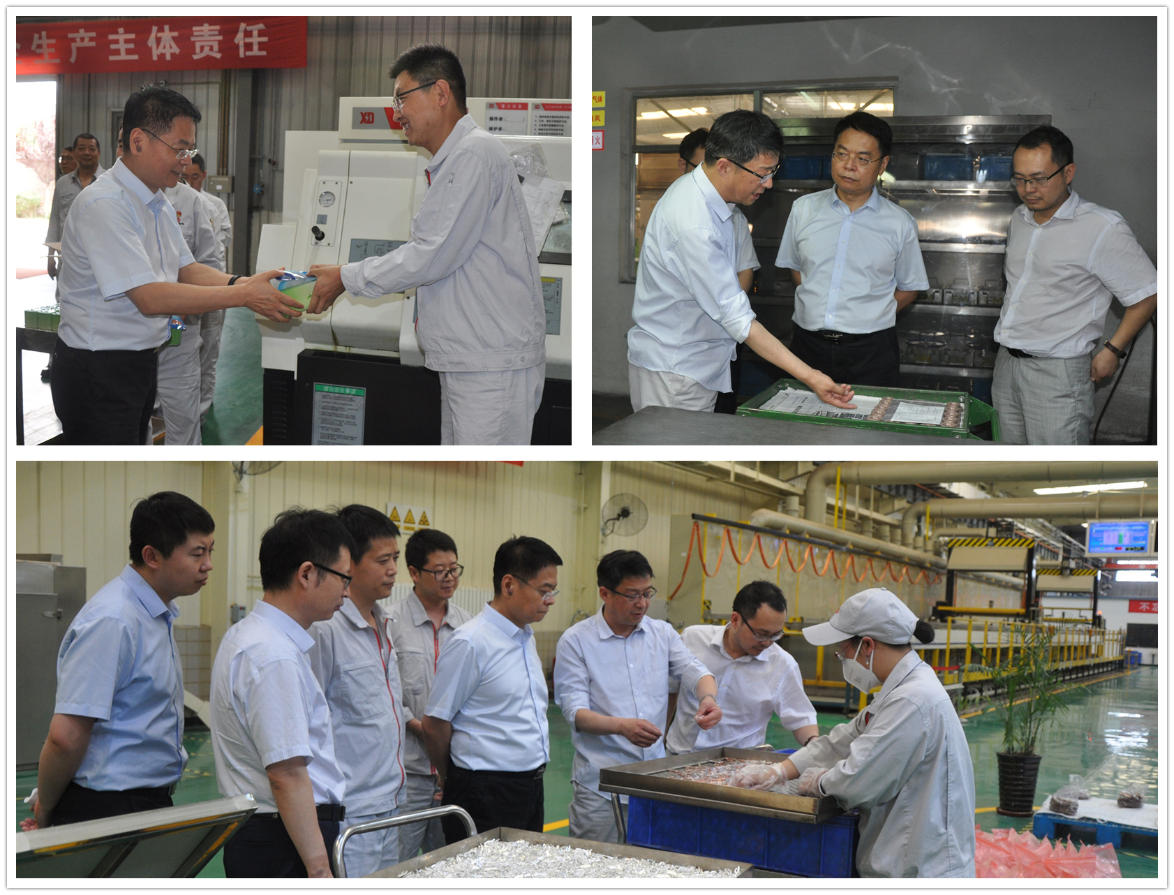 裴振江一行深入生產(chǎn)車間,詳細(xì)了解觸頭產(chǎn)品生產(chǎn)工藝和加工過程,慰問了一線員工,并聽取了天水合金負(fù)責(zé)人關(guān)于業(yè)務(wù)發(fā)展、市場(chǎng)開拓及上半年預(yù)算完成情況的匯報(bào)。
